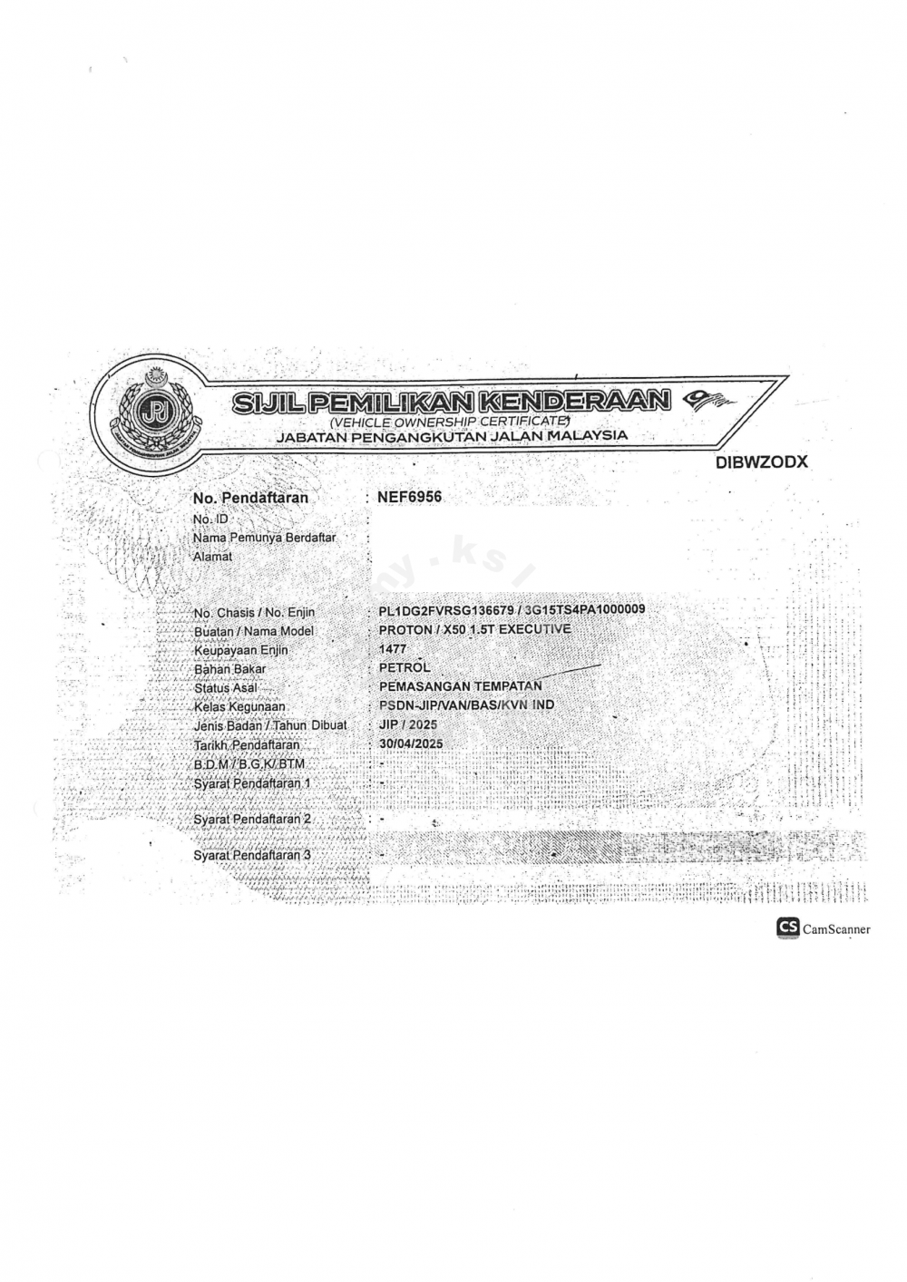 Plat Number